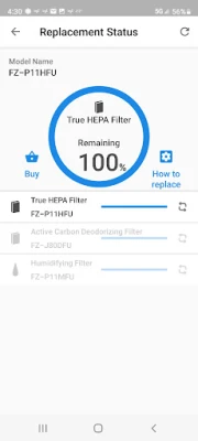 - Replacement status for Filters and Plasmacluster Ion Generating Unit